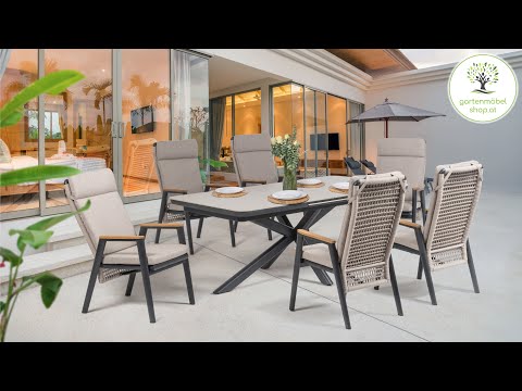 Ob für ein intimes Abendessen im Freien oder eine große Gartenfeier, der Baxter-Flex passt sich flexibel an jede Situation an. Seine hochwertige Verarbeitung garantiert Langlebigkeit, während sein modernes Design deinem Außenbereich eine exklusive Note verleiht.