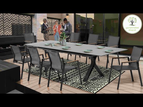 Mit seinem hochwertigen Sinterstone, den zwei stilvollen Farbvarianten und der cleveren Funktionalität ist der Cameron ein Must-Have für jeden Außenbereich. Egal ob große Gartenpartys oder entspannte Abende mit der Familie – dieser Tisch kombiniert Design, Qualität und Komfort in Perfektion.