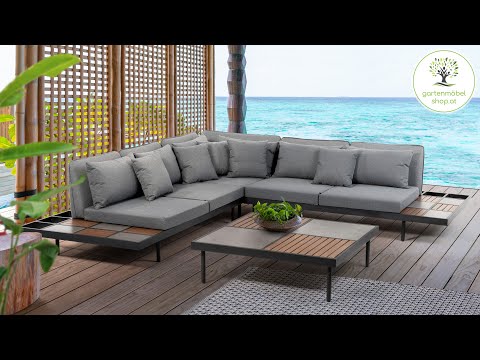 Kissen und Dekoration: Die Sitz- und Rückenkissen sowie die 5 zusätzlichen Dekokissen sind wasserabweisend und können sich nicht vollsaugen. Sie sind in einem zeitlosen Grau gehalten und bieten höchsten Komfort und Pflegeleichtigkeit.