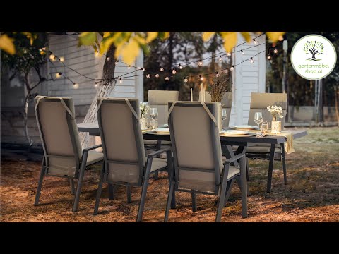 Die Hedda Gartengruppe besteht aus einem ausziehbaren Gartentisch und 6 bequemen Hochlehner-Stühlen und vereint modernes Design mit hochwertigen Materialien. Perfekt für gesellige Runden in Ihrem Garten oder auf der Terrasse.