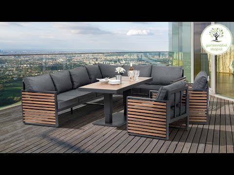 Die Eckbankgruppe Liliane verbindet modernes Design mit hoher Funktionalität und ist die ideale Wahl für alle, die Wert auf Flexibilität und Stil in ihrem Garten oder auf der Terrasse legen.