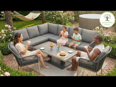 Die Poppy Eckbankgruppe kombiniert moderne Materialien, hochwertige Verarbeitung und ein richtig praktisches Feature (höhenverstellbarer Tisch) – ideal für gesellige Outdoor-Momente vom Nachmittagsdrink bis zum Dinner.