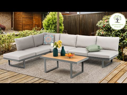 - Seat and back cushions: High-quality upholstery in grey-beige that is not only comfortable, but also 100% weatherproof and easy to care for. They can be easily removed and cleaned.