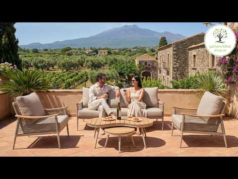 The Barney lounge set combines modern outdoor design with high-quality natural materials. The combination of powder-coated aluminum, elegant textile cords, and solid teak wood makes this garden lounge a stylish centerpiece for any patio or garden.