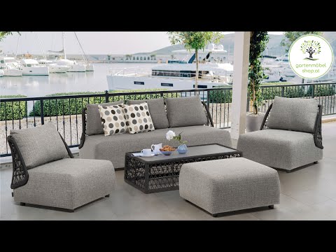 - Backrest and coffee table: Made of high-quality textile cords in anthracite. This modern, round lacing gives the furniture a unique, airy design that combines elegance and functionality.