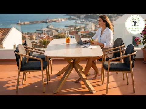 The Olenna garden table harmonizes perfectly with the Olenna garden chair and the matching Olenna lounge set . Together they create a cohesive outdoor ensemble with natural elegance and modern comfort.