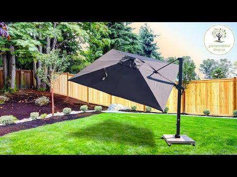 A special highlight is the 100 kg granite base , which is included in the delivery. Thanks to the four fixed castors, the umbrella can be moved effortlessly and positioned in the desired location. Locking brakes on the castors ensure that it stands securely.