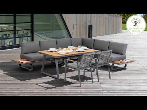 - Flexible setup: The corner bench (320 x 250 cm) can be set up upside down so that it adapts perfectly to your outdoor area.